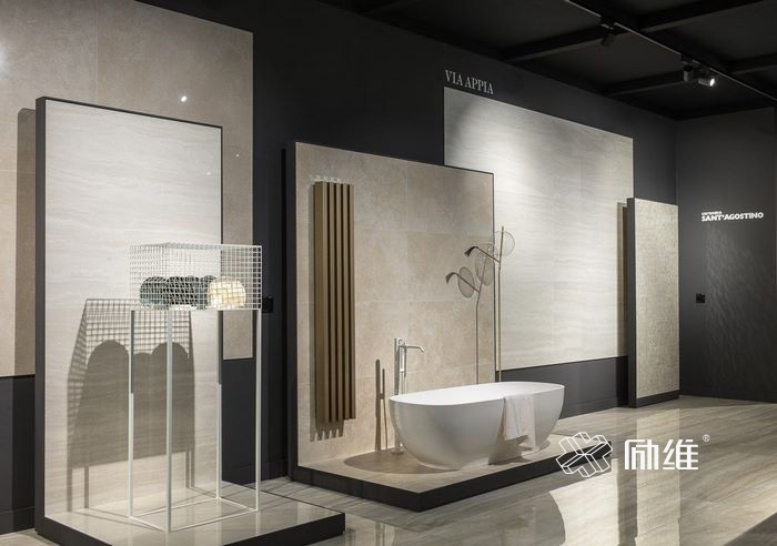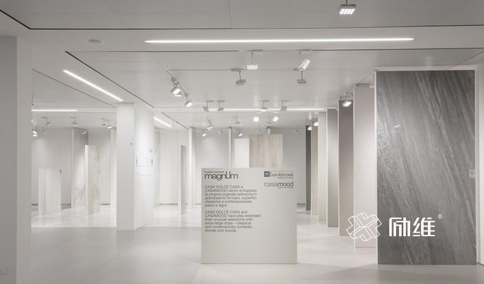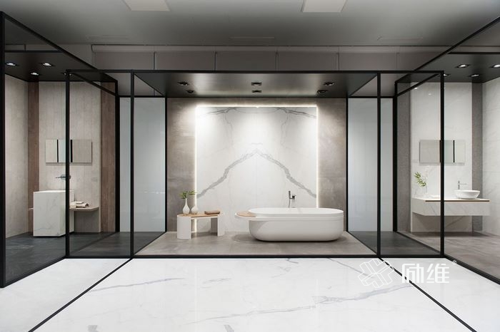 1、瓷砖展厅设计可以以石材和瓷砖为主