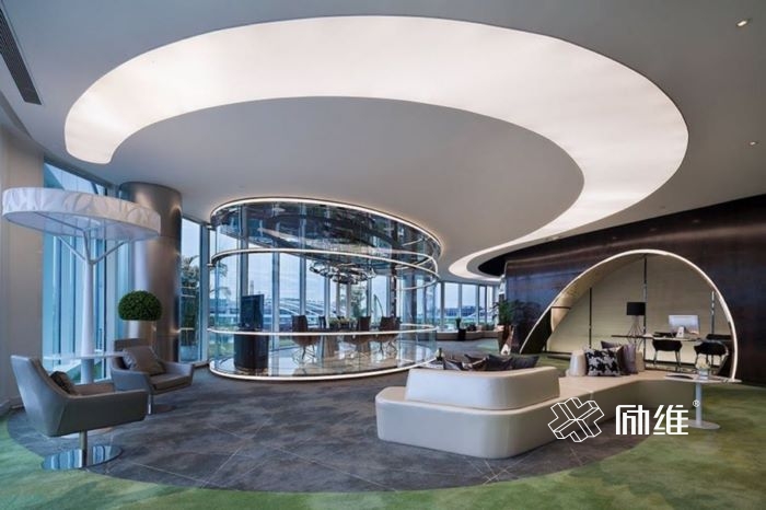 1、展厅空间布局:通常情况下,商业营销类展厅多以追求视觉清新明快、展示氛围柔和为主导思想。利用空间视觉体系下的,光影透视原理以及动态光影追踪的手法,形成一种视觉丰富、多维度的展厅设计空间效果。