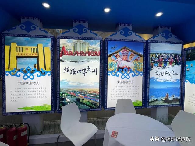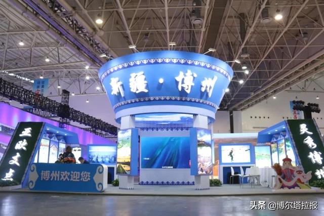近年来,博州文化与旅游产业在湖北省文旅厅的支持下,旅游经济快速发展,此次中国文化旅游博览会现场,设立新疆博州独立特装展区,展厅设计灵感将蒙古族帽子与草原元素及哈达造型相结合,展厅灯箱画面紧扣文旅融合主题,围绕自然生态、运动激情、文化休闲、健康养生、丝路口岸五大板块,集中展示博州丰富的旅游资源、精品线路产品、升级版优惠政策等。